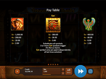 Treasures Of Tombs считается одним из лучших игровых аппаратов, запустив который, вы убедитесь в высоких шансах на победу. Азартная игра способна поразить воображение геймера завораживающей музыкой, качественной графикой и внушительными призовыми суммами. Она обладает удобным управлением, с которым легко разберется даже начинающий посетитель интернет заведений.![]()