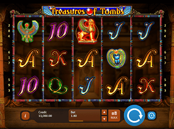 Слот-машина Сокровища Гробницы состоит из классического набора барабанов, под которым находится простейшая панель управления. Стоит отметить, что для настройки и запуска розыгрышей геймерам достаточно разобраться с назначением всего нескольких кнопок, а для формирования выигрышных сочетаний им предоставлено целых десять символов: статуи богини Исиды и Сфинкса, жуки-скарабеи, портреты девушки-археолога и карточные обозначения от десятки до туза. Кроме того, в новой игре присутствует ”wild” картинка в виде древнего иероглифа.